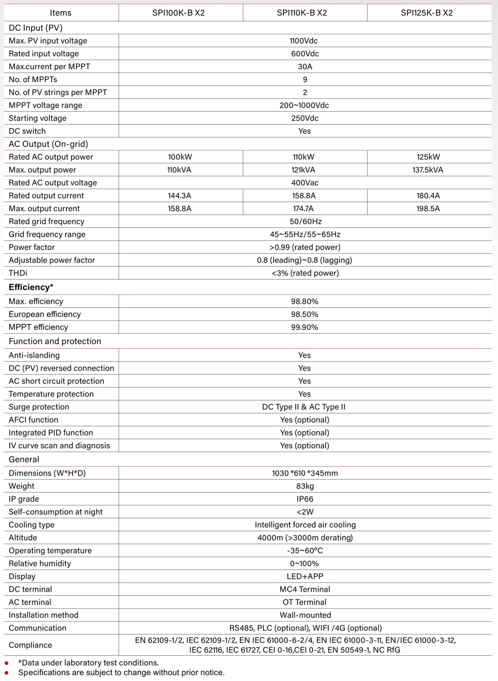 9 MPPT progettati con efficienza massima del 98.8%.Fino a 15 A di corrente massima per stringa fotovoltaica,compatibile con moduli di ocrrente di grandi dimensioni/bifacciali.
